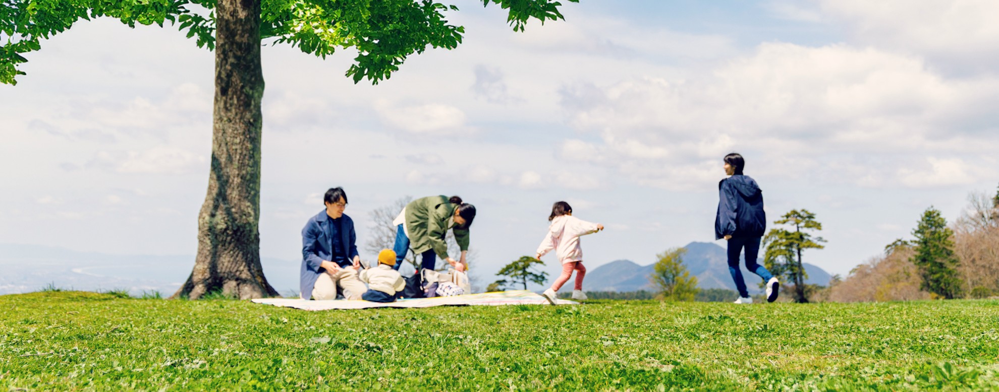 どこまでも広がる空。ふかふかで鮮やかな芝生のカーペット。大人から子供まで、みんながそれぞれの時間を楽しめる大きな広場。みんなで笑い声を響かせて遊ぶのも、芝生をベッドに自然を感じながら寝転ぶのも、どれもがあなたにとって心弾むひとときに。